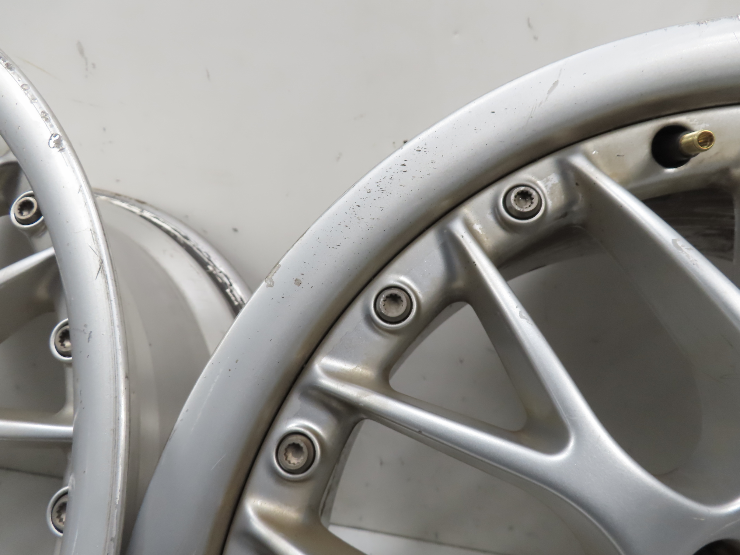 - Notes: Front size: 17x7.5 offset:41mm, rear size: 17x8.5 offset:41mm. wheels have some spots of curb rash on them, some of the clearcoat finish has peeled off in spots. (see pics).