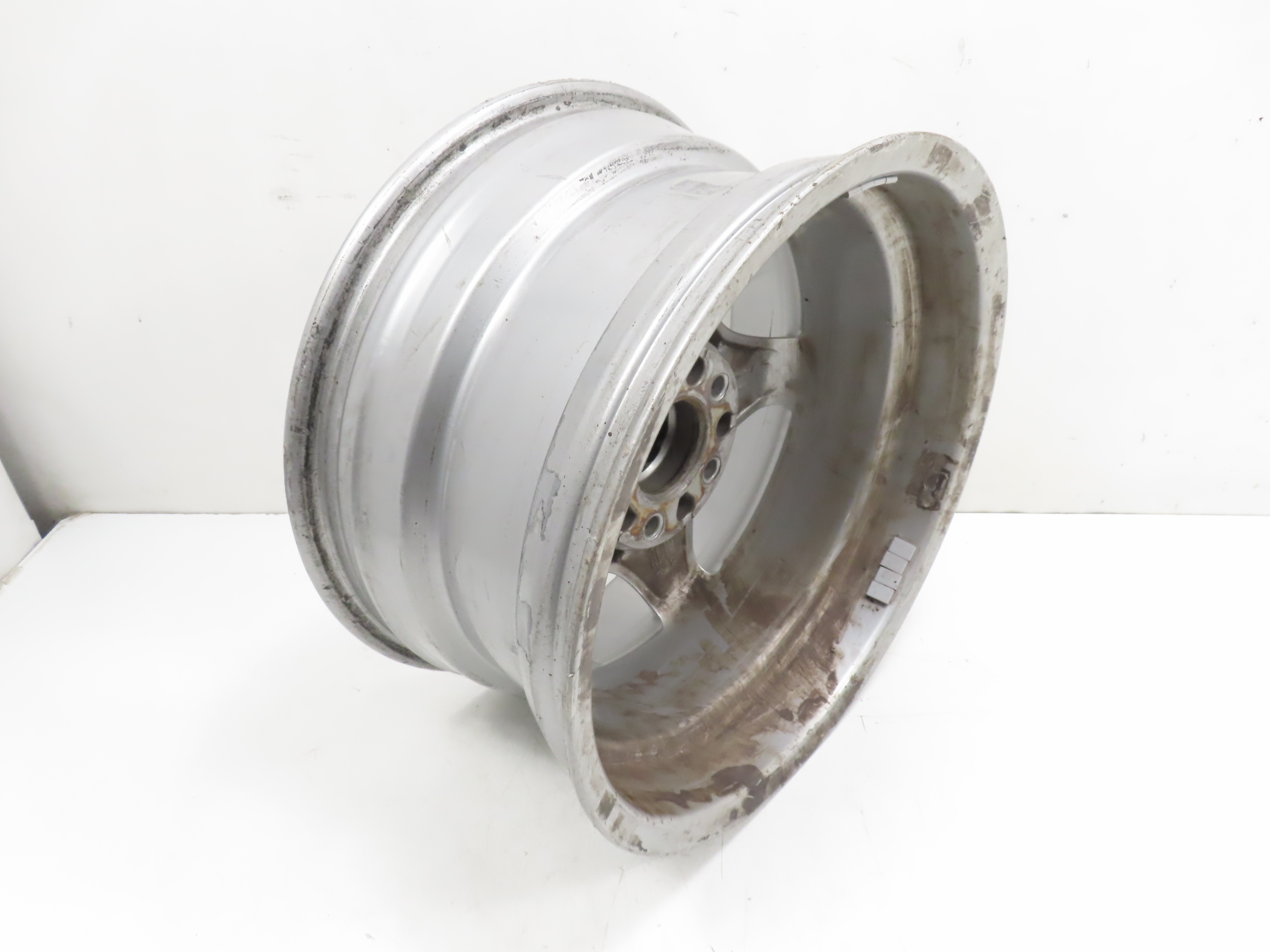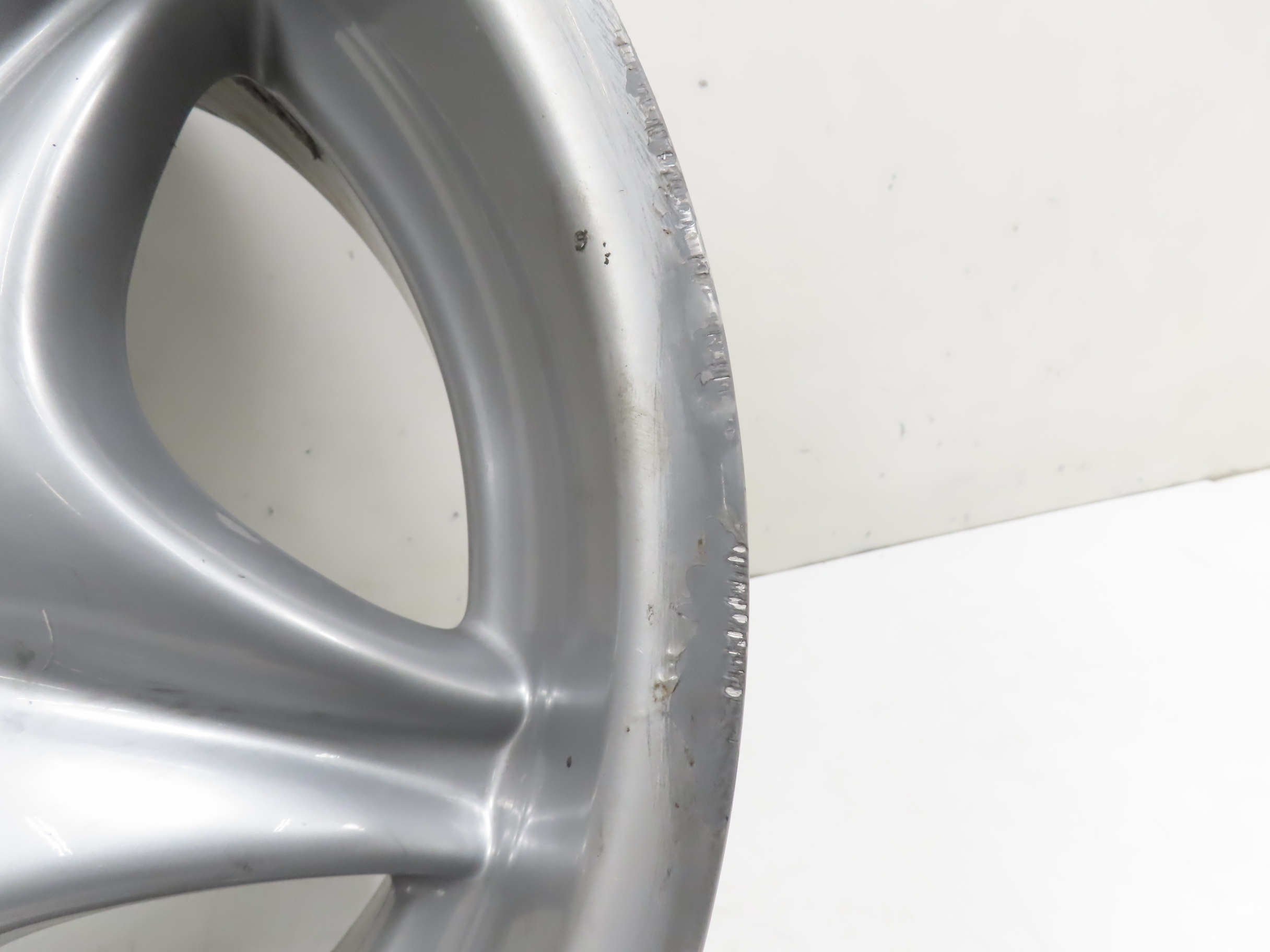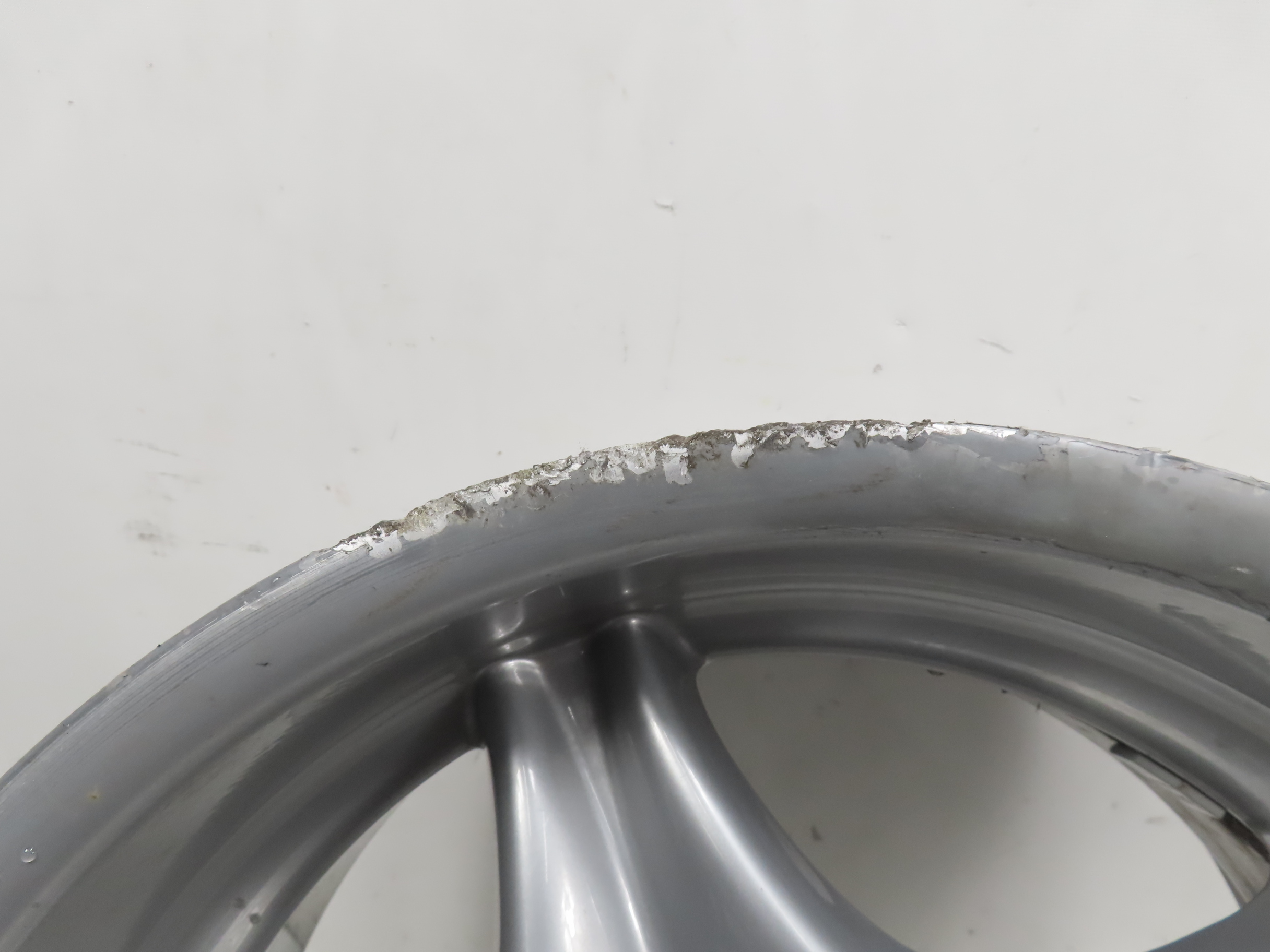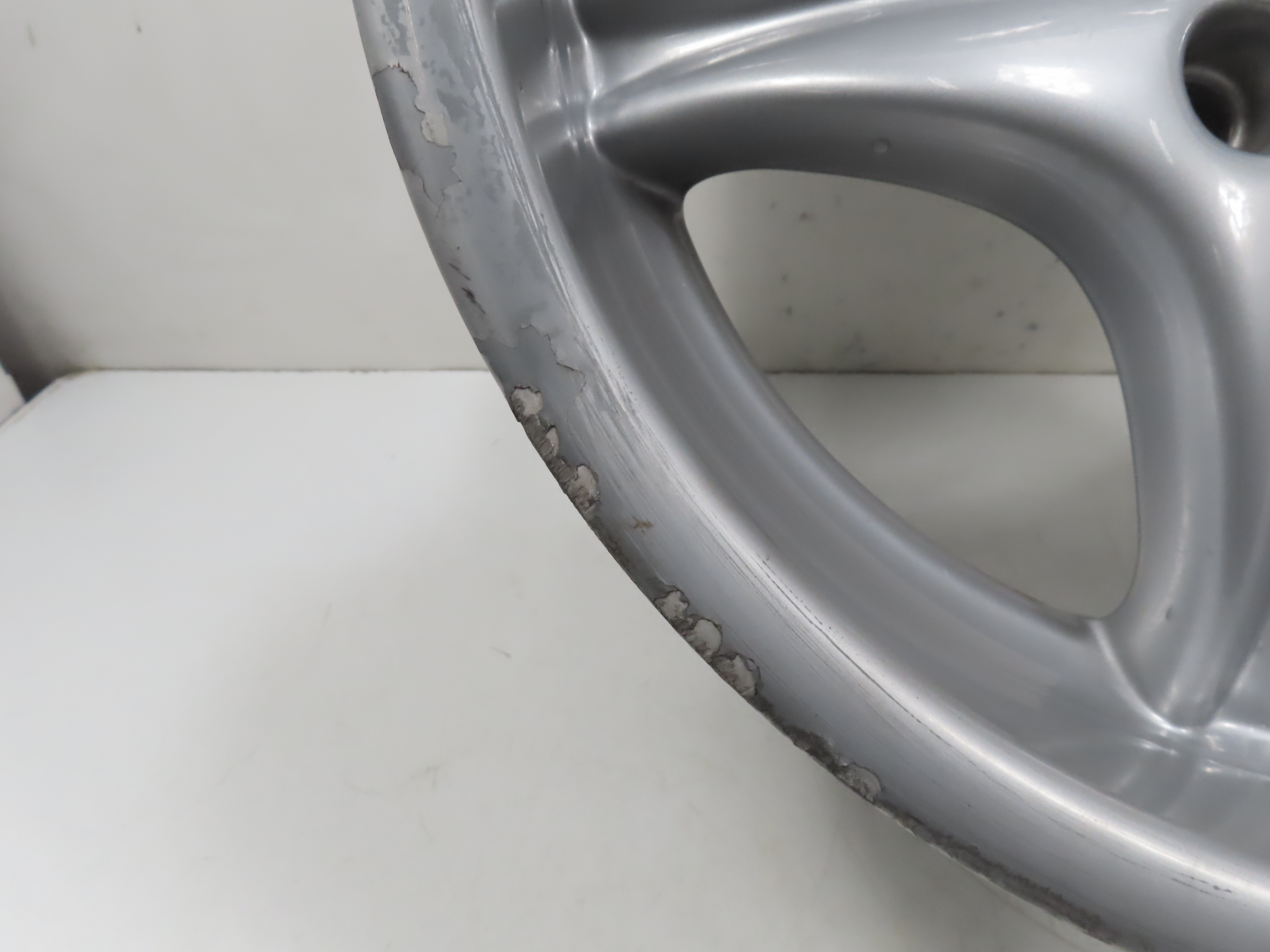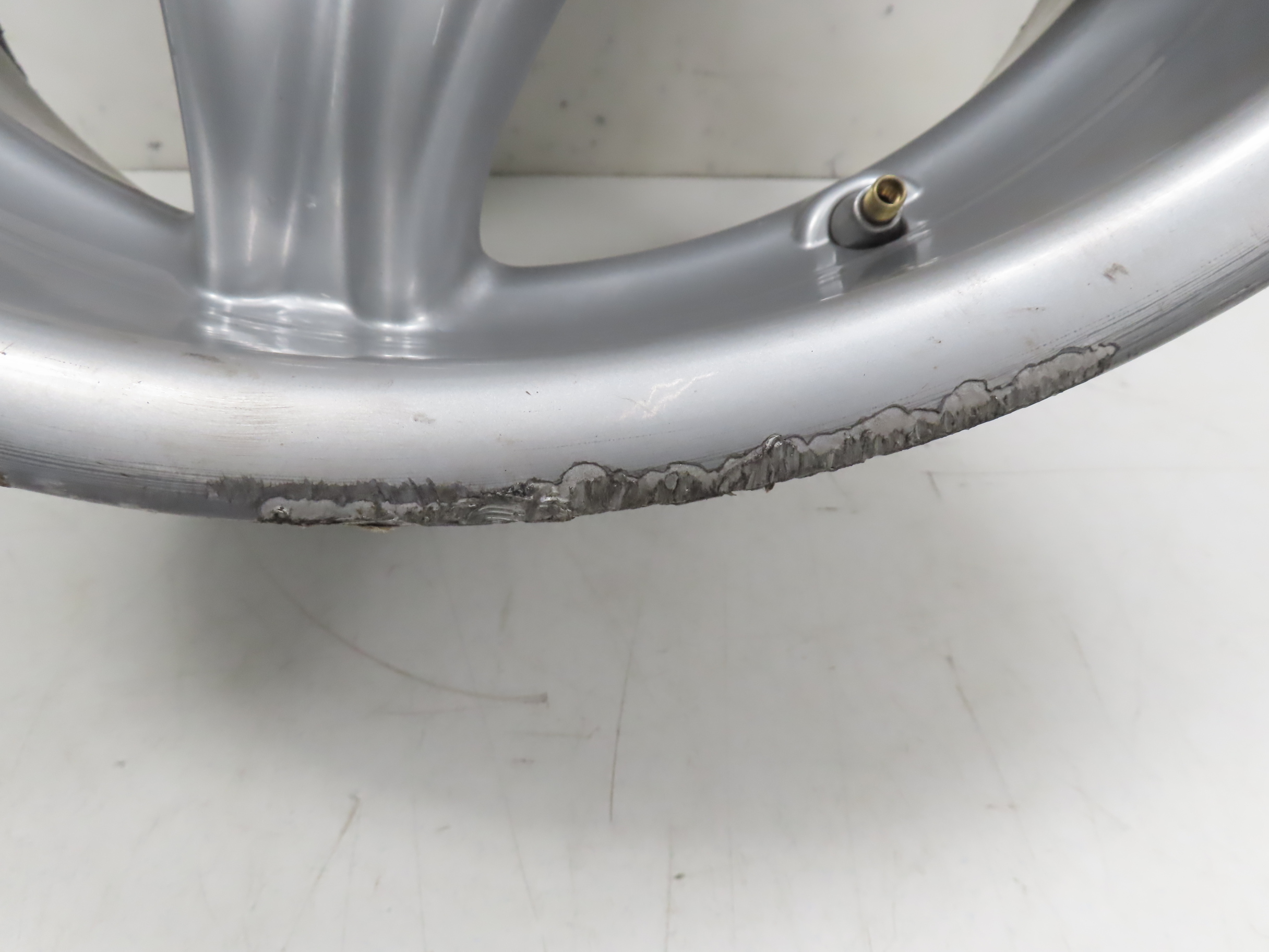 Deep curb scratches along the edge.